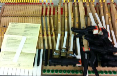 Een grote ivoor-revisie aan een mooie Bosendorfer vleugel. Er was een plaat ivoor gebroken, links op de foto